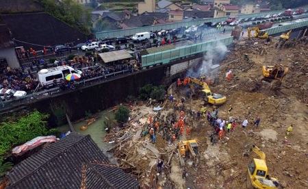 mud and rock, engulfing homes in Lidong village, Zhejiang province. The